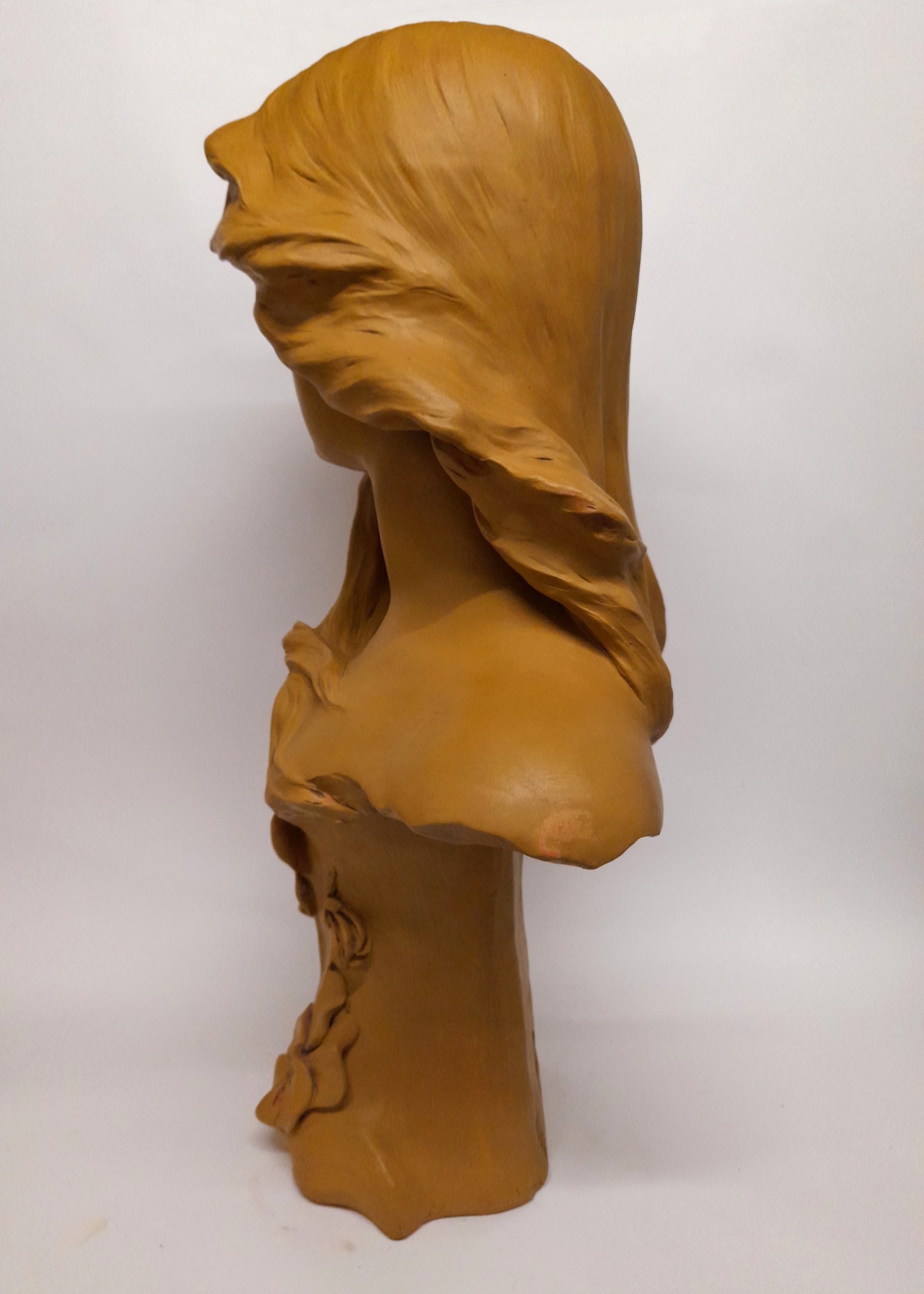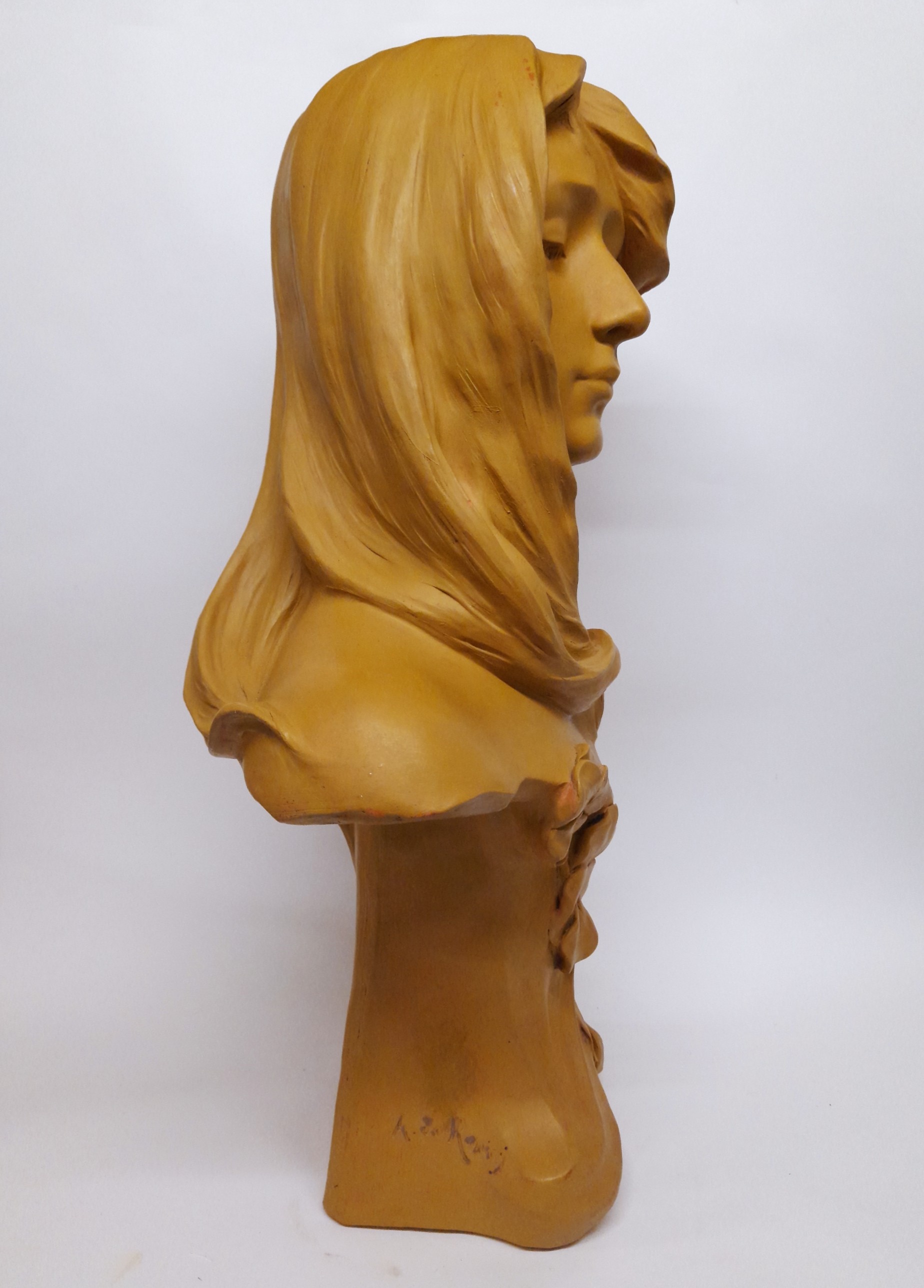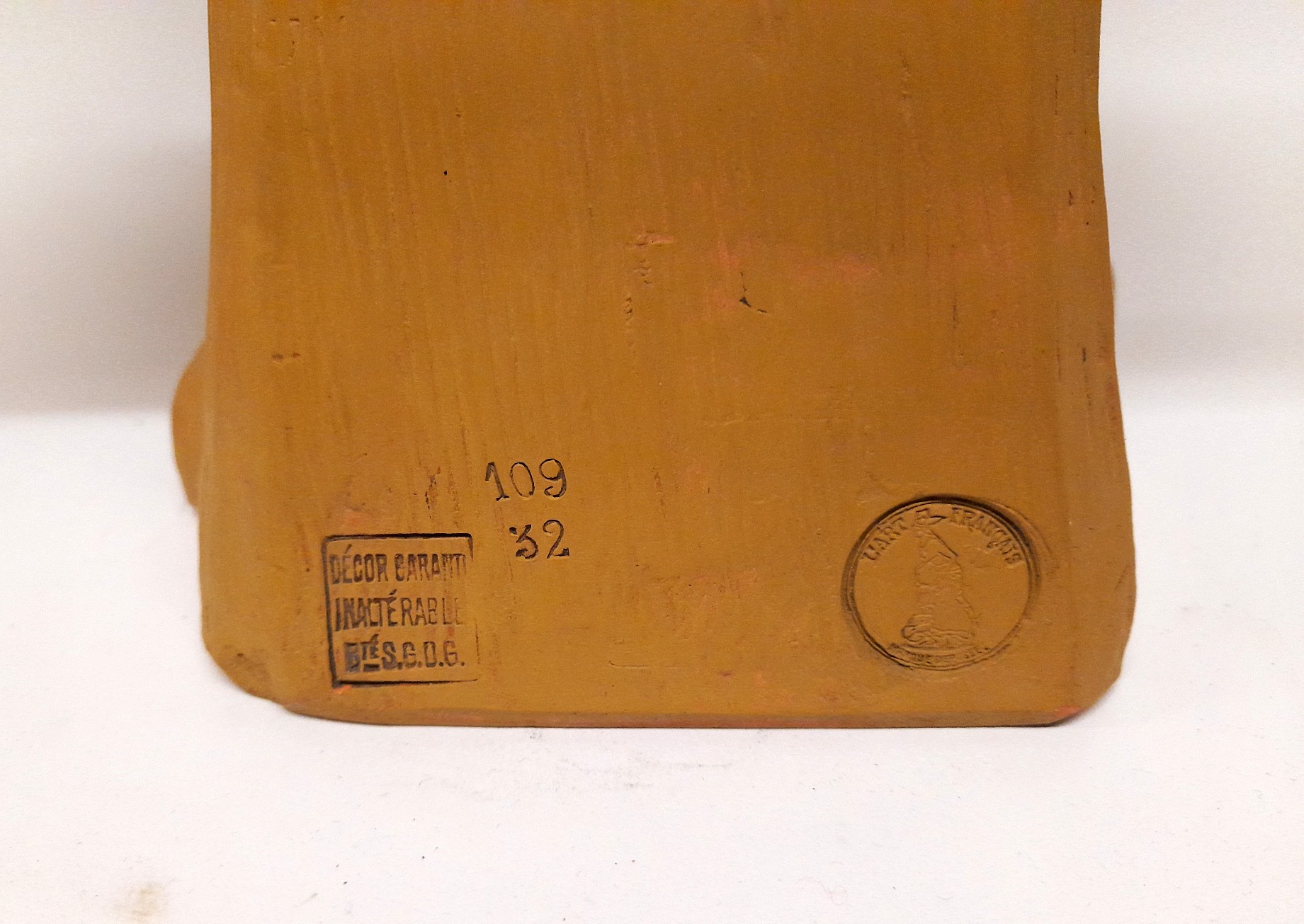Ce rare buste en terre cuite à patine ou engobe beige, a été produit dans les ateliers que le groupe Utzschneider et Compagnie (Sarreguemines) avait acquis à Saint-Maurice au début du 20ème siècle.